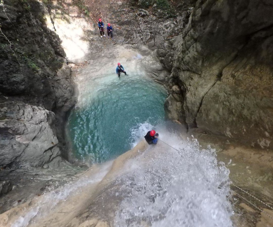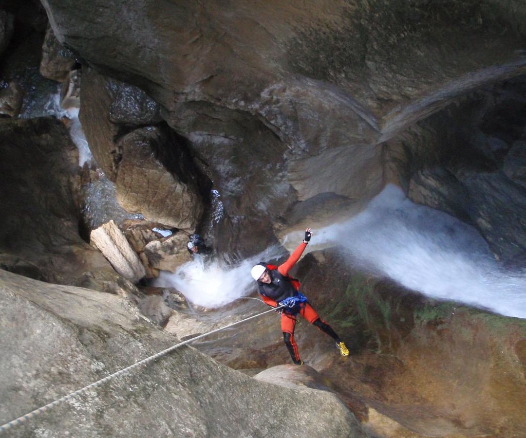 La descente de canyon, canyonisme, ou canyoning consiste à descendre le cours d’une rivière; les eaux torrentielles, au fil du temps, ont entaillées la roche, créant par endroit de magnifiques gorges encaissées, composées d’une multitude d’obstacles de formes et de hauteurs variées.